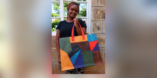 Evelyn Awino with a leather bag she made at Nashipai Leather Kenya at Kabati, Murang'a County in this photo taken on December 6, 2024.