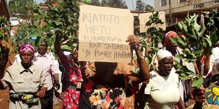 Women in Mwimuto village in Kikuyu County protested over increased alcohol consumption in the area in this file photo.