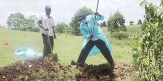 Overwhelmed by the tribulations, Ms Chelangat broke down on Friday evening as she watched grave diggers exhume and rummage through remains in a mass grave in search of the body bag containing that of her son.