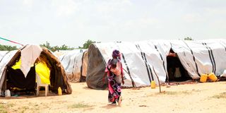 A woman walks at Young Muslim High School IDP camp in Garissa on December 19, 2023.