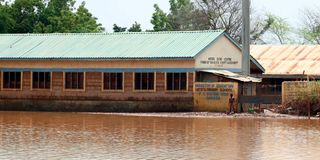 A flooded Hatata Primary School field in Tana River County on December 18, 2023.