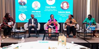 From left: Women's economic empowerment specialist and gender lead for East and Southern Africa Wendy Okolo, State Department for Gender and Affirmative Action technical specialist John Ndonji, Pearl Dairy farmers Ltd chief human resource officer Catherine Njonjo, Coalition on Violence Against Women executive director Fridah Wawira and Kenya Private Sector Alliance gender specialist Lucy Mitei in a panel discussion during a forum addressing gender-based violence in agriculture at Hyatt Regency, Nairobi, on November 19, 2025.