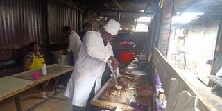 Mr Harun Mwangi, who mainly sells hooves and soup delicacies, prepares food at his business in Kitengela, Kajiado County, on December 23, 2024.