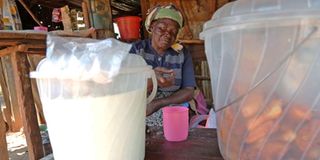 Teresia Awino Ogidi at her workplace in Oruba, Migori on July 21, 2021. Ms Awino is the second wife to Sergeant Joseph Ogidi Obuon Senior.