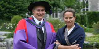 His Highness the Aga Khan (left) with his daughter Princess Zahra (right) before he was honoured by the National University of Ireland, Maynooth for his work against poverty and in promoting religious understanding.
