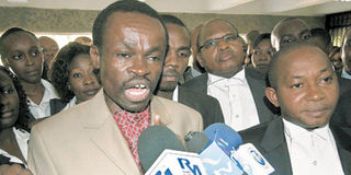 Former Kenya Anti Corruption Commission director Patrick Lumumba (centre) and lawyers during a protest at Ardhi House in July over corruption at the ministry. Photo/FILE