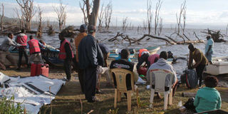 Relatives and friends of the victims of the Lake Nakuru chopper crash wait on the shores of the lake on November 3, 2017.