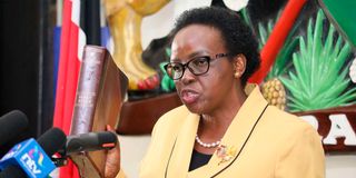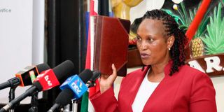 The Independence Electoral and Boundaries Commission (IEBC) Commissioner Anne Njeri Nderitu takes an oath during the swearing-in of the new IEBC Commissioners at the Supreme Court in Nairobi on July 11, 2025.