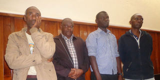 Naftali Chege, Charles Wang'ombe Munyiri (Rtd), Ishmael Bulima and John Pamba at the High Court in Mombasa on July 19, 2018, when they were charged with Alexander Monson's murder. PHOTO | PHILIP MUYANGA | NATION MEDIA GROUP