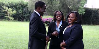 LSK President Nelson Havi, vice president Carolyne Kamende Daudi and chief executive officer Mercy Wambua (centre) at the institution’s offices in Nairobi on March 2, 2020.