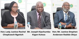 Others are the Independent Police Oversight Authority Chairperson Ahmed Issack Hassan, Capital Markets Tribunal Chair Paul Lilan, Senior Counsel Katwa Kigen, Brown Kairaria, and Johnson Okello, who is the director of legal services at the Parliamentary Service Commission.