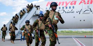 Kenyan police officers disembark in Haiti to join an expanded multinational force with a mandate to fight gangs, at Toussaint Louverture International Airport, in Port-au-Prince, Haiti December 8, 2025.
