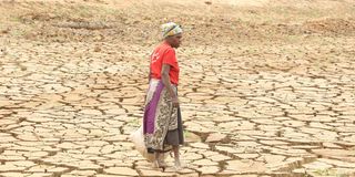 A woman at the Kishenyi dam in Wundanyi, Taita Taveta County. Taita Taveta is reeling from the effects of changing weather patterns that have led to the drying up of two major dams that humans and livestock depend on.