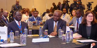 From left: National Counter Terrorism Centre Director-General Kibiego Kigen, Interior Principal Secretary Raymond Omollo and Henriette Geiger, European Union Ambassador to Kenya at the Fourth Nairobi Caucus on Enhancing Border Patrol to Deter and Disrupt Terrorism Activity on August 19, 2025.