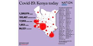 CS Kagwe also reported 24 more recoveries, 13 of them in hospital and 11 under the home-based care programme, raising the total to 86,521.