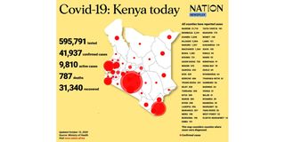 Kenya coronavirus caseload reached 41,937 on Tuesday, with the Health ministry's announcement of 318 more cases following the testing of 2,592 samples in 24 hours.