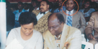 David Wambugu sits behind Kibaki at a function in Embu in 1999.