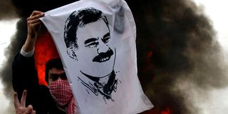 A Kurdish youth holds up a portrait of rebel Kurdish leader Abdullah Ocalan during Newroz celebrations in Istanbul, on March 23, 2008.