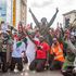 A group of protesters march on Moi Avenue in Mombasa during the commemoration of victims of police brutality during the June 2024 protests.