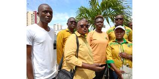 Kuppet members address the press as they kick off their strike in Mombasa.
