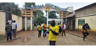 The officials of the Kenya Union of Post-Primary Education Teachers close the gates of Bungoma High School.
