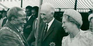 President Jomo Kenyatta greets Humphrey Slade and his wife at a State House party in 1969. At the time, Slade was the Speaker of the National Assembly.