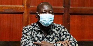 Tom Oywa Mboya at Milimani Law Courts on September 23, 2021 during the judgement of a case where he is charged with attempting to kill the proprietor of K’Osewe Ronalo Foods restaurants William Guda Osewe.
