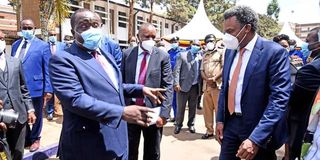 Interior Cabinet Secretary Fred Matiang’i, DCI George Kinoti and DPP Noordin Haji during the launch of the digital OB at Buruburu Police Station in Nairobi on August 3, 2020. PHOTO | FILE | NATION MEDIA GROUP