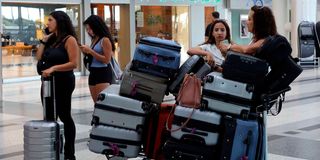 Women stand near their luggage in front of the Middle East Airlines (MEA) offices at the Beirut–Rafic Hariri International Airport, in Beirut, Lebanon July 28, 2024.