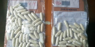 The packets of suspected narcotics which Nigerian Princess Okoye was found with at the JKIA in Nairobi on March 3, 2019. PHOTO | COURTESY