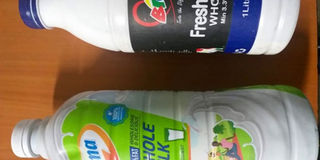 The bottles of milk, stuffed with packets of suspected narcotics, which Nigerian Princess Okoye was found with at the JKIA in Nairobi on March 3, 2019. PHOTO | COURTESY