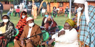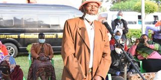 Papa Shirandula's father, Cosmas Bukeko Wafula, addresses mourners on July 20, 2020. PHOTO | ISAAC WALE | NATION MEDIA GROUP