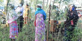 Mourners follow the funeral through the home's fence. PHOTO | ISAAC WALE | NATION MEDIA GROUP