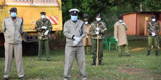 Vigilant police officers keep watch as people are locked outside the home where the service is taking place. PHOTO | ISAAC WALE | NATION MEDIA GROUP