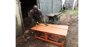Mr Peter Kipngeno Cheruiyot, a jailbird turned pastor taking measurements of a table at his workshop in Bomet town on March, 28, 2022