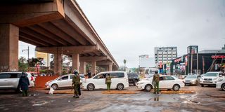 A police roadblock at Westlands roundabout in Nairobi on July 7, 2025 after police officers blocked all roads leading the Central Business District.