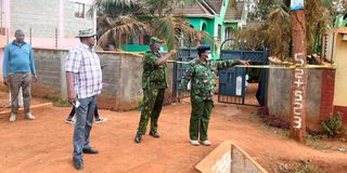 Police at the home of Mr George Mwangi, who was murdered. They have arrested his wife, Ms Chania.