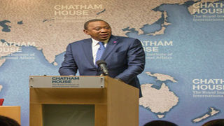Then President Uhuru Kenyatta speaking at the Chatham House in London on April 18, 2018.