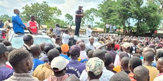 Deputy President Kithure Kindiki campaigns for Mbeere North UDA candidate Mr Leonard Muthende at Karemere Market, Embu County, on November 24, 2025.