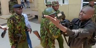 Anti-riot police manhandle journalists covering Babu Owino's case at Milimani courts.
