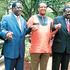 ODM party leader Oburu Oginga (left) with deputy party leaders, Simba Arati and Godfrey Osotsi during the ODM@20 anniversary celebrations at Mama Ngina Waterfront in Mombasa on November 15, 2025.