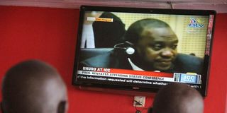Locals follow live proceedings of the International Criminal Court’s Status Conference on television, where then President Uhuru Kenyatta appeared before the judges of The Hague-based court, at Silver Breeze Hotel in Eldoret in early October 2014.