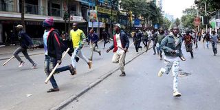 Pro-Government protesters running after people who were participating in protests in Nairobi on June 17, 2025.