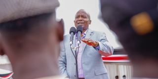 Deputy President Kithure Kindiki speaks at Marigat High School grounds on Saturday, August 16, 2025 during a women empowerment drive.