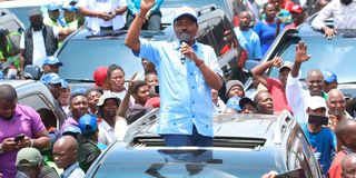 Wiper Leader Kalonzo Musyoka addresses a rally organised by the United Opposition in Masii, Machakos County.