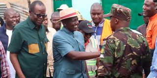 President William Ruto and Migori Governor Ochilo Ayacko when they inspected the construction of Riosiri Market in Rongo on May 5, 2025.