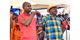 ODM leader Raila Odinga with Bernard 'Imran' Okoth during campaigns on November 2, 2019.