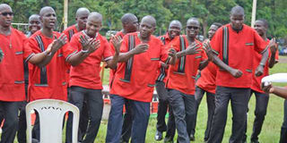 Mwakigwena Choir performing the popular Wimbo wa Historia at the Nyayo National Stadium during the Mashujaa Day Celebrations on October 20, 2013. PHOTO/SALTON NJAU.