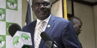 Independent Electoral and Boundaries Commission chairman Wafula Chebukati addresses journalists at Anniversary Towers in Nairobi on September 1, 2017. IEBC will incur more costs when conducting a presidential election rerun. PHOTO | EVANS HABIL | NATION MEDIA GROUP