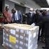 Police officers guard the first batch of ballot papers which were received by IEBC at JKIA on July 7, 2022.